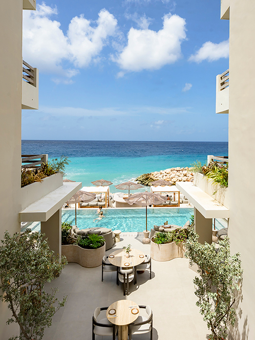 Studio Piet Boon ontwierp de interieurs van de publieke ruimtes, hotelkamers en penthouses. De overgang van stad naar zee is voelbaar in de kleuren en materialen: van levendige energie aan de straatzijde naar rustgevende tinten en natuurlijke texturen aan de achterkant. Lokale kunstobjecten geven het hotel extra identiteit en verankeren Curaçao’s creatieve kracht in de beleving van de gasten.