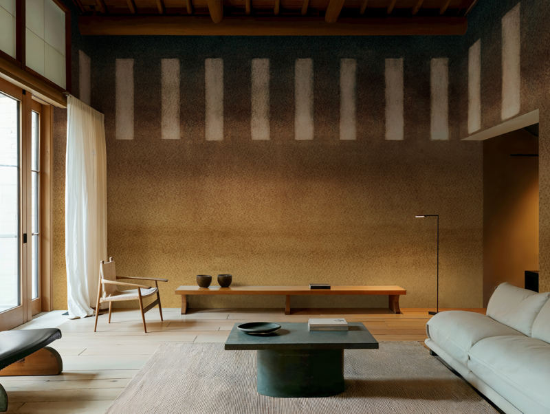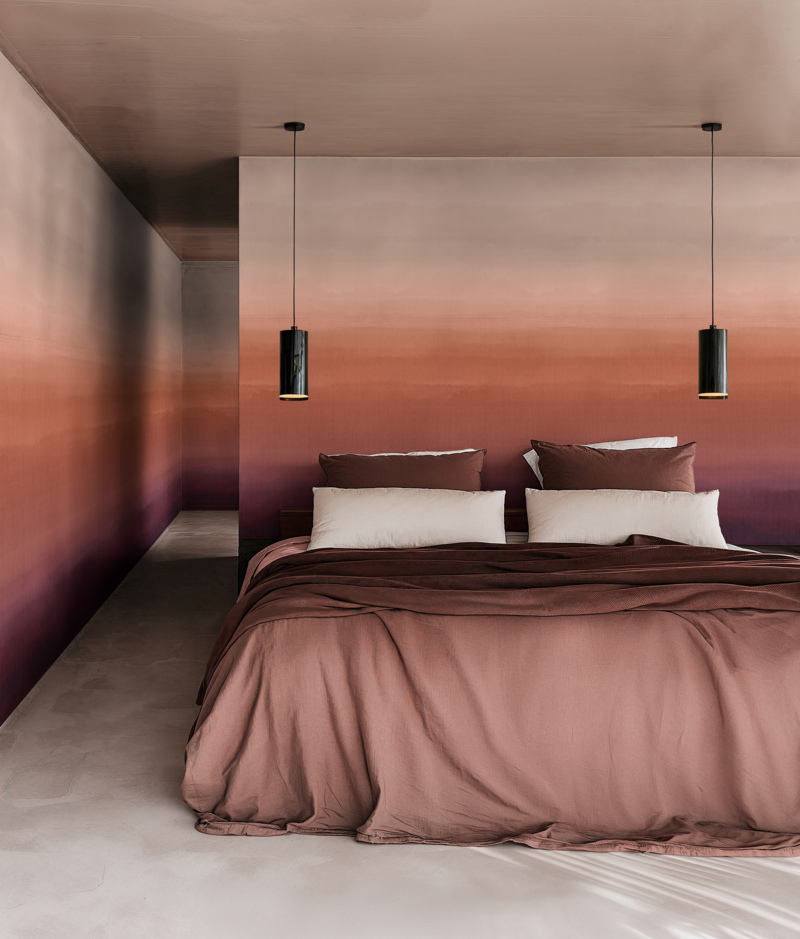 * Hinode - B (geleidelijke verftechniek): De zachte overgang van de dageraad gevangen in textiel.