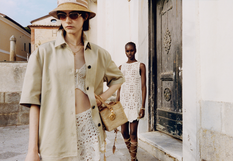 Als stijlvolle finishing touch bevat de collectie rieten accessoires zoals de D-Bobby hoed en de Teddy-D met tweekleurige raffiabasis. De sieradencapsule Cabinet d’Été voegt daar een verfijnd accent aan toe.