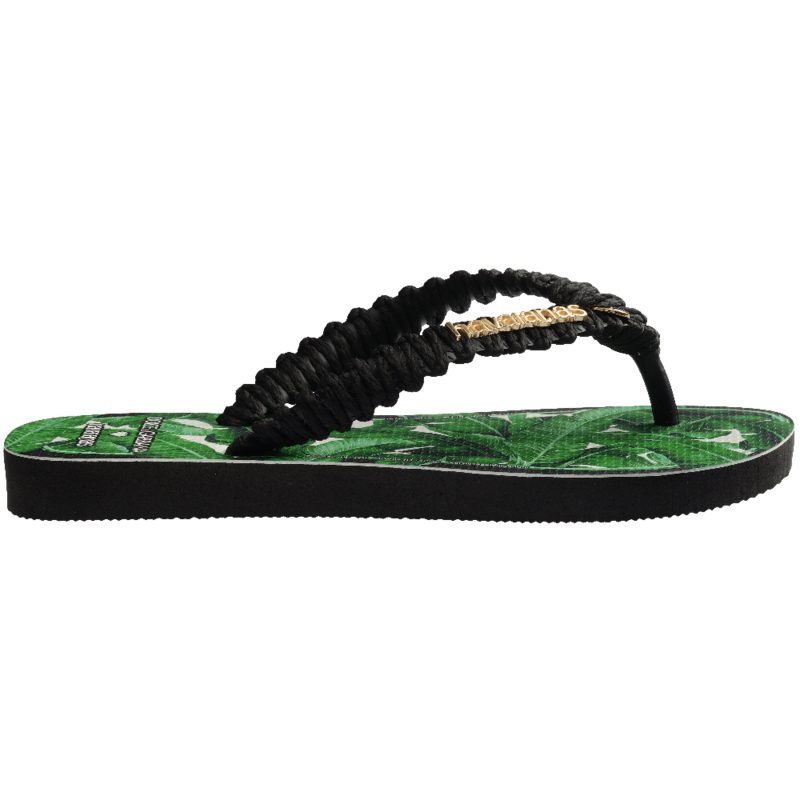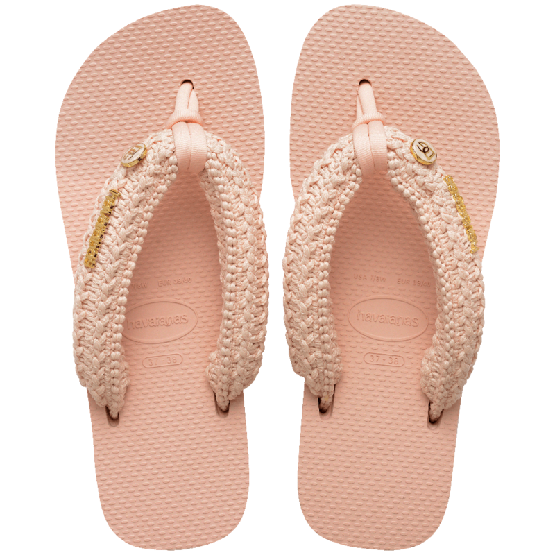 De collectie bestaat uit drie uitgesproken stijlen: platforms met macramé banden, tropische florals met handgemaakte details en glamoureuze dierenprints afgewerkt met zacht imitatiebont. Elk paar is versierd met een metallic Havaianas-logo en een exclusieve Dolce&Gabbana-pin.