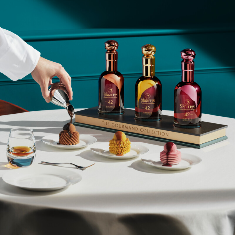 Whiskymerk The Singleton introduceert de Gourmand Collection: drie uitzonderlijke 42 jaar oude single malts, elk met een uitgesproken karakter en gelaagde smaak. Ter ere van deze bijzondere collectie liet The Singleton de whisky’s vertalen naar verfijnde desserts, gecreëerd door Meester Patissier Nicolas Rouzaud, bekend van The Connaught in Londen. Het resultaat is een unieke harmonie tussen rijpe whisky’s en haute patisserie, ontwikkeld voor liefhebbers die vakmanschap en smaak tot in detail weten te waarderen. Kenmerkend voor deze collectie is de langste secundaire rijping in de geschiedenis van The Singleton.