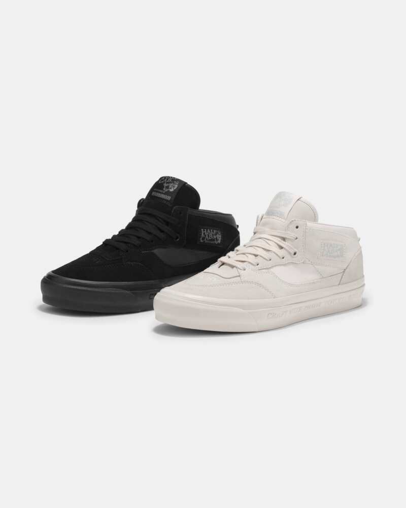 Beide modellen zijn uitgevoerd in premium suède en leer en afgewerkt met subtiel ton-sur-ton stikwerk, waardoor de schoenen een strakke en luxe uitstraling krijgen. De Half Cab 33 springt in het oog met details als “Craft With Pride Tokyo Est. 1994” op de zijkant en “Neighborhood Craft With Pride” op de hiel. De Classic Slip-On 98 onderscheidt zich door een ingetogen debossed “NBHD”-logo op de hiel en de tekst “Neighborhood Tokyo Est. 1994 Technical Apparel Craft With Pride” op de wreef.