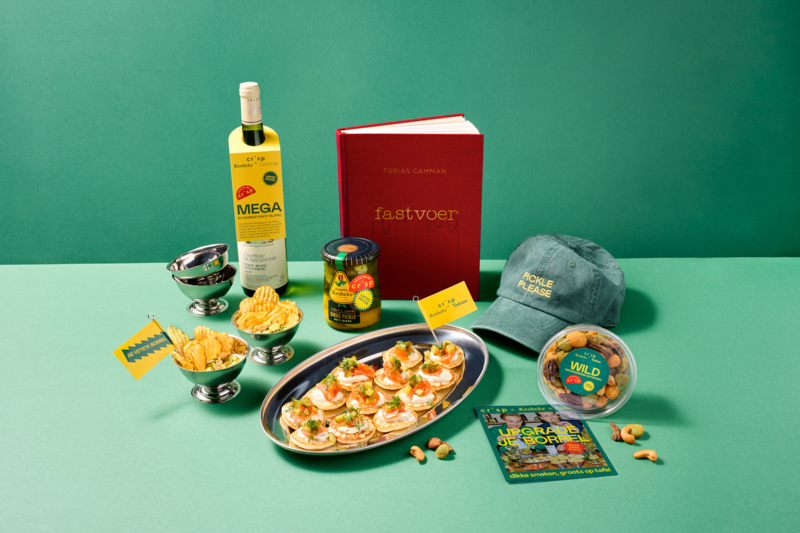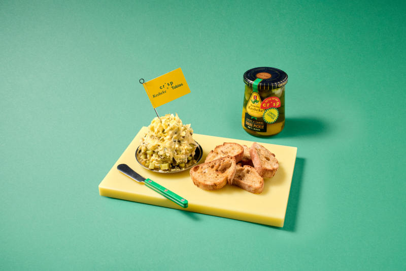 Samen met Crisp ontwikkelde het duo een reeks kleine gerechten waarin de Dikke Pickle schittert. Van ‘sjieke pickle-chips’ met crème fraîche en bieslook tot een ‘pickle-blini’ met mosterdkaviaar en opgeklopte ‘pickle-boter’. Camiel Kesbeke: “Het is humor in de keuken, maar met serieuze smaak.”